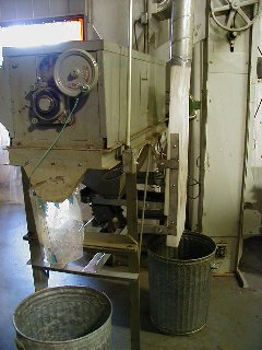 The second process that the pecans on the Small Batch side endure is shelling. This sheller is much like the big one that is for large batches except that--you guessed it--it's smaller! After the meats are beaten around and the shells seperate from them, they will fall down through the spaces in the sheller's cylinder and are aspirated before they fall into the barrel. By the term aspirated, I mean the shells are "sucked" off of the meats, and while the meats fall into the bucket, the shells fall into a big storage sack. You can actually ask for your shells back for gardening if you want to, but most clients appreciate us taking it off of their hands. The finished product for small batches is mostly meats with a small amount of shell in them, depending on the quality of the batch. Most batches can be dumped on an open table and the shells can be picked out relatively easily since they have been cracked and shelled.